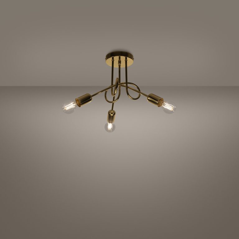 Przystosowana do trzech żarówek, elegancka lampa sufitowa Crazy 3 w złotym kolorze to idealne oświetlenie do salonu, sypialni, jadalni i holu. To projekt, który skutecznie rozjaśnia przestrzeń, wyróżnia się designerskim wyglądem oraz wysoką jakością wykonania.