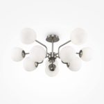 Niezwykle elegancka lampa sufitowa Erich 10 do sypialni ma 90,7 cm szerokości i głębokości oraz 34 cm wysokości. Model składa się z metalowego stelaż z ramionami oraz z dziesięciu kloszy, z których każdy przeznaczony jest do jednej żarówki. Lampa do sypialni Erich 10 ma niklowo-biały kolor.