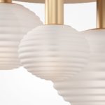 W sufitowej lampie Reels 3 najbardziej charakterystyczne są trzy klosze, z których każdy ma kształt kuli i inny rozmiar. Klosze wyróżniają się dekoracyjną żłobioną powierzchnią, która nadaje całości unikatowego wyglądu. Elegancka lampa sufitowa Reels 3 na złotym stelażu doskonale prezentuje się w jasnych aranżacjach, w których dominuje biel.