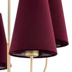 Wyjątkowo elegancka lampa sufitowa Safiano 4 od razu zwraca na siebie uwagę! Model wyposażony jest w cztery abażury o stożkowej formie, utrzymane w przepięknej, bordowej kolorystyce. Uzupełnieniem jest stalowy, złoty stelaż z wygiętymi ramionami. To propozycja, która zachwyci zarówno miłośników klasyki, jak i stylu modern classic. Idealna do salonu, sprawdzi się także w zupełnie innych pomieszczeniach!