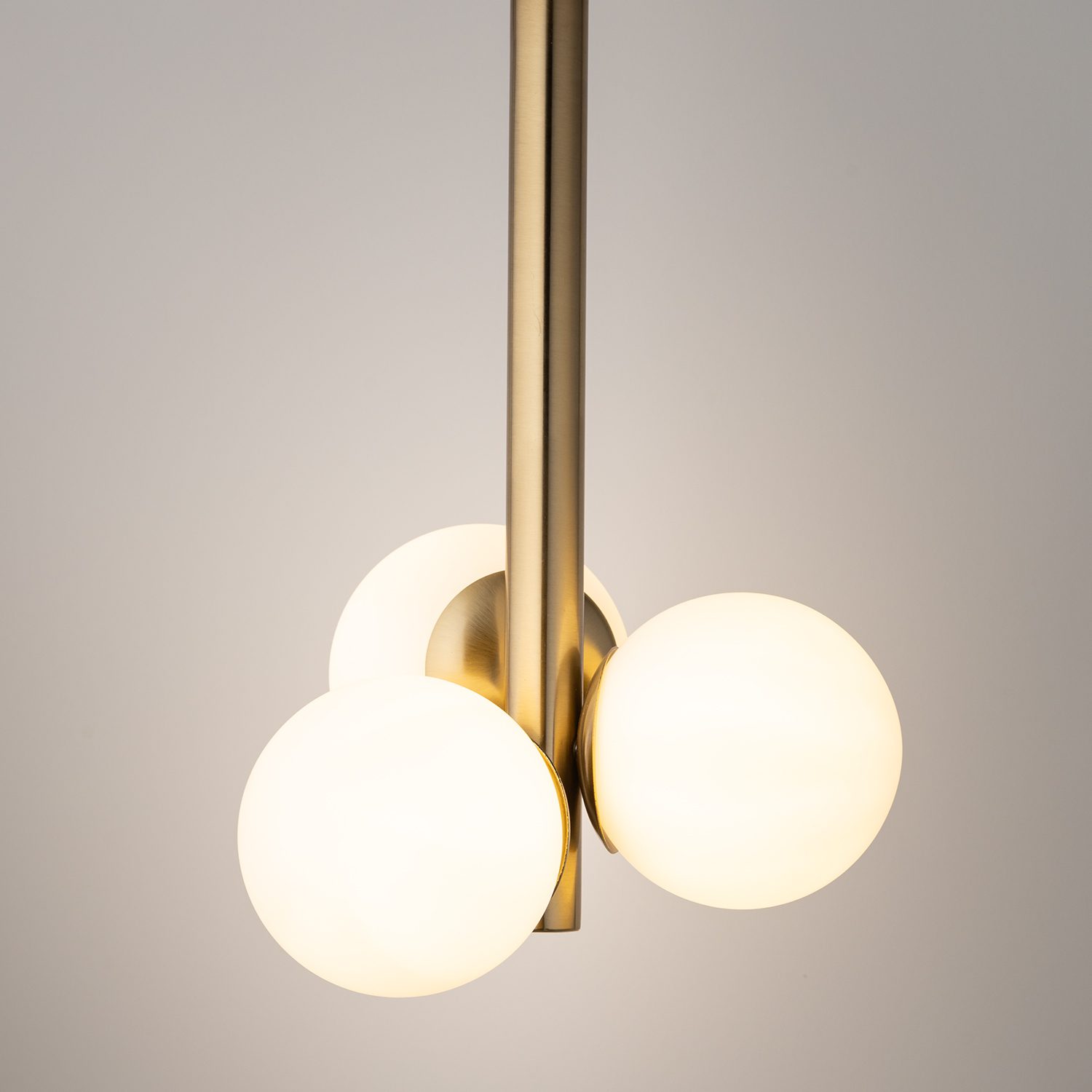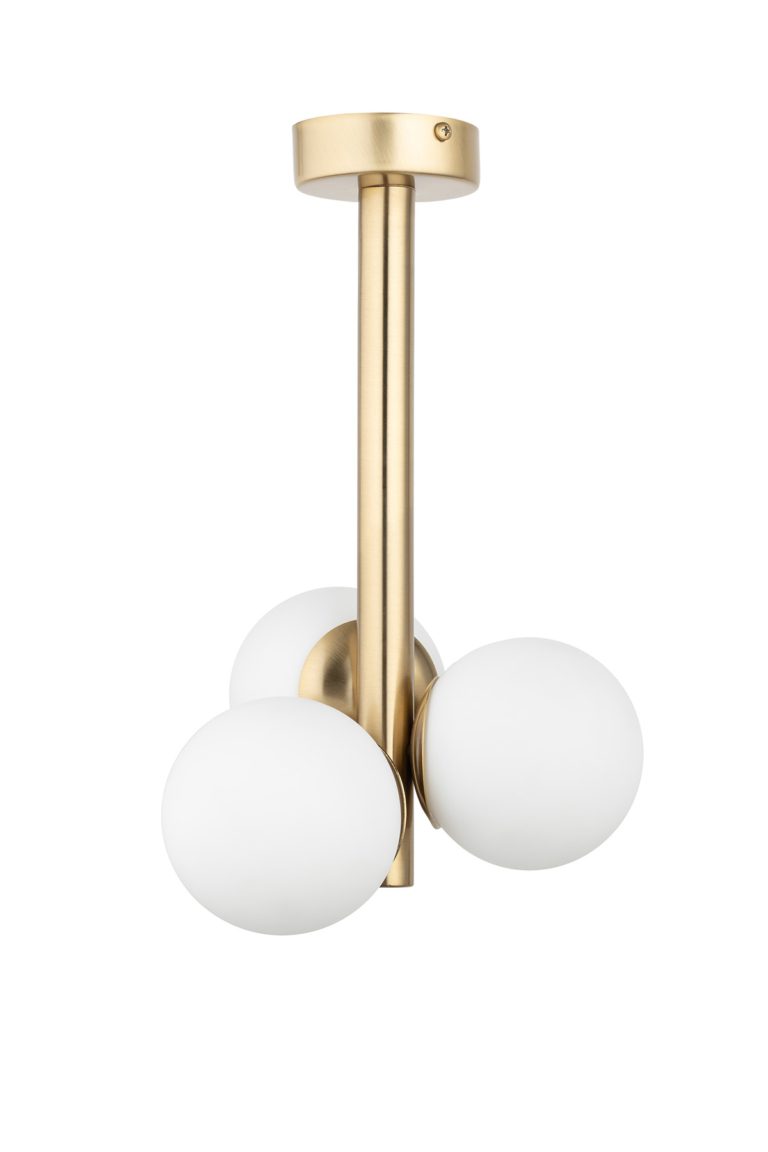 Elegancka lampa sufitowa Sunneva 3 do salonu posiada wyjątkowo modne obecnie klosze w kształcie kul. Każda z nich ma 10 cm średnicy i wykonana została ze szkła w mlecznym odcieniu bieli. Potrójna lampa do salonu Sunneva 3 znakomicie rozprasza światło, zarówno dzięki liczbie, kształtowi, jak i kolorystyce kloszy.