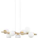 Lampa wisząca do jadalni Abi 7 wyposażona jest w siedem szklanych białych kloszy, których kulisty kształt doskonale rozprasza światło. Ze względu na liczbę punktów świetlnych, elegancka lampa wisząca Abi 7 w złotym kolorze z powodzeniem może zastąpić zwykły żyrandol! Oferowany model znakomicie odnajduje się we wnętrzach nowoczesnych i glamour.