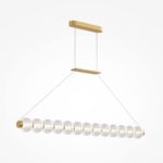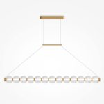 To oprawa świetlna, która wyposażona jest w niezwykle dekoracyjny klosz składający się ze szklanych kul. Elegancka lampa wisząca Amulet na złotym stelażu znakomicie pasuje do wnętrz glamour oraz inspirowanych stylem nowoczesny glamour. Szklaną lampę Amulet warto zestawić z innymi wysokiej jakości dodatkami o tej samej kolorystyce – na przykład ze złotym lustrem.