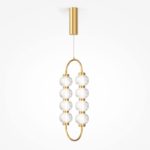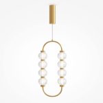 Elegancka lampa wisząca Amulet w złotym kolorze od razu zwraca na siebie uwagę swoim nietypowym wyglądem. Model składa się z metalowego stelaża w owalnym kształcie oraz kloszy-kul wykonanych z dekoracyjnego szkła. Złota lampa Amulet doskonale pasuje do wnętrz w stylu glamour oraz nowoczesny glamour.
