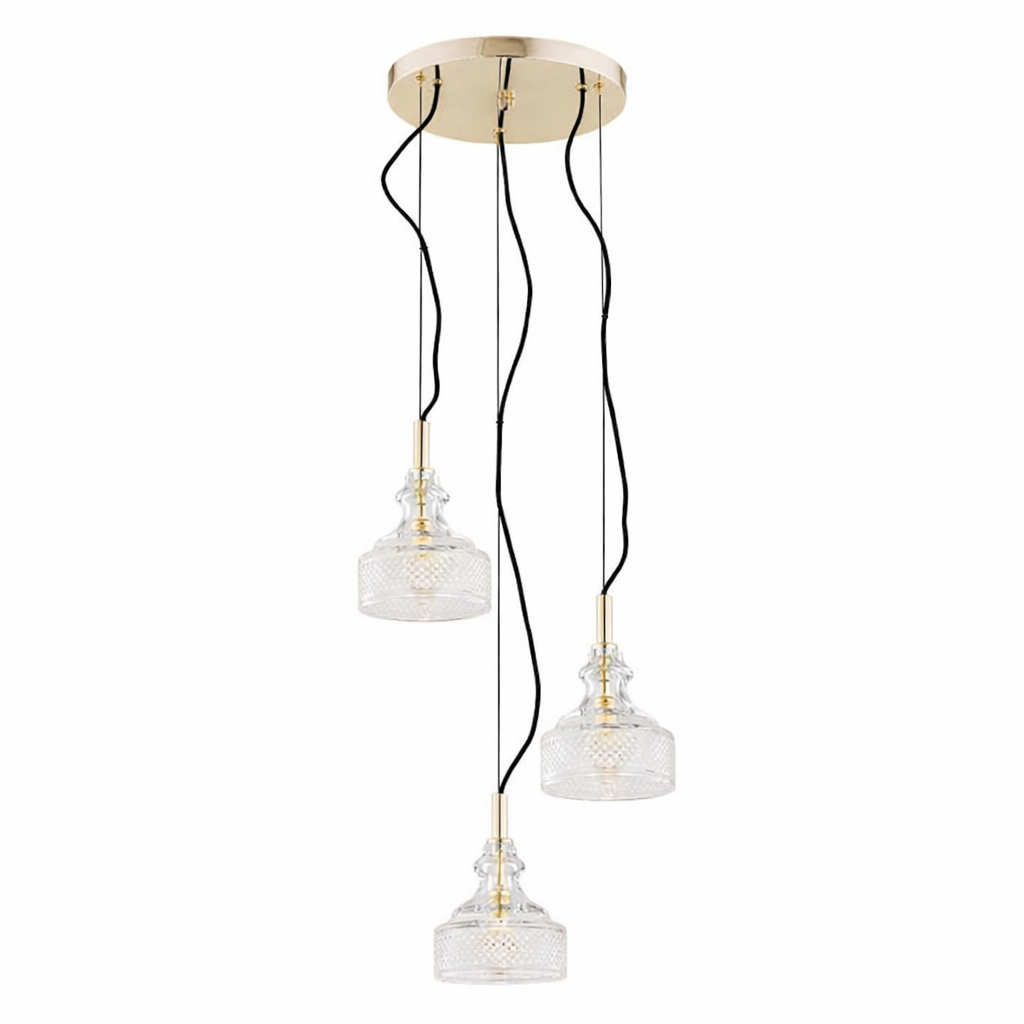 Wyjątkowo dekoracyjna i elegancka lampa wisząca Cruz 3 w stylu glamour to doskonała propozycja oświetlenia do salonu, jadalni oraz innych ważnych dla Twojego domu wnętrz. Wyposażona w ozdobne klosze, nada każdej aranżacji zjawiskowego wyglądu i z pewnością przyciągnie uwagę Twoich gości!