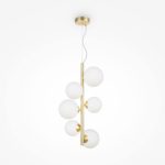 Elegancka lampa wisząca Dallas 6 na złotym stelażu może mieć maksymalnie 170 cm, dlatego możesz ją zamontować nisko nad stołem, czy wyspą kuchenną, ale też wyżej – na przykład nad centralną częścią wnętrza.