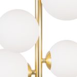 Oferowana lampa ze złotym stelażem Dallas 6 posiada klosze w kształcie kuli, z których każda wykonana została z białego szkła perfekcyjnie rozpraszającego światło. Klosze mają dwie różne średnice: 10 i 12 cm.