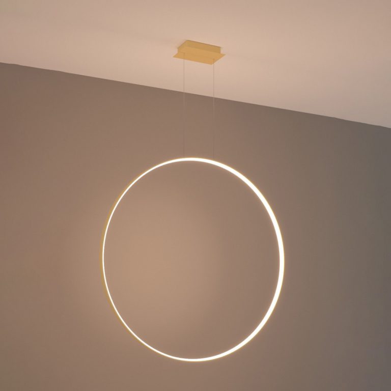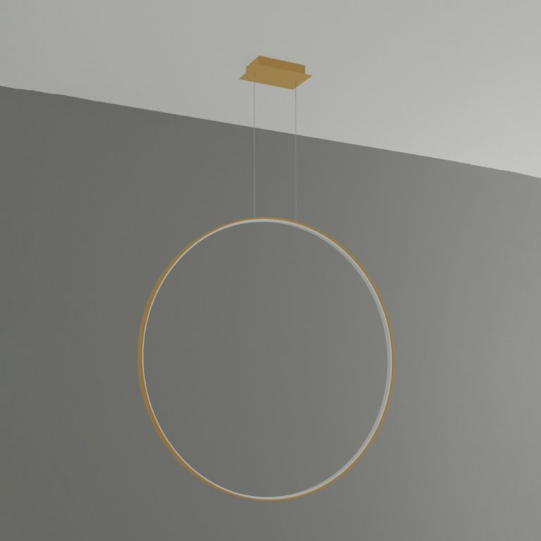 Dla jeszcze większej funkcjonalności, elegancka lampa wisząca LED Rio o matowym wykończeniu umożliwia samodzielnie wyregulowanie wysokości linek mocujących. Maksymalnie oprawa może mieć 150 cm, co jest wystarczającą długością do większości pomieszczeń. Pod względem estetycznym, lampa pierścieniowa LED Rio doskonale pasuje do minimalistycznych aranżacji, a dzięki złotej kolorystyce sprawdzi się także we wnętrzach łączących styl nowoczesny i glamour.
