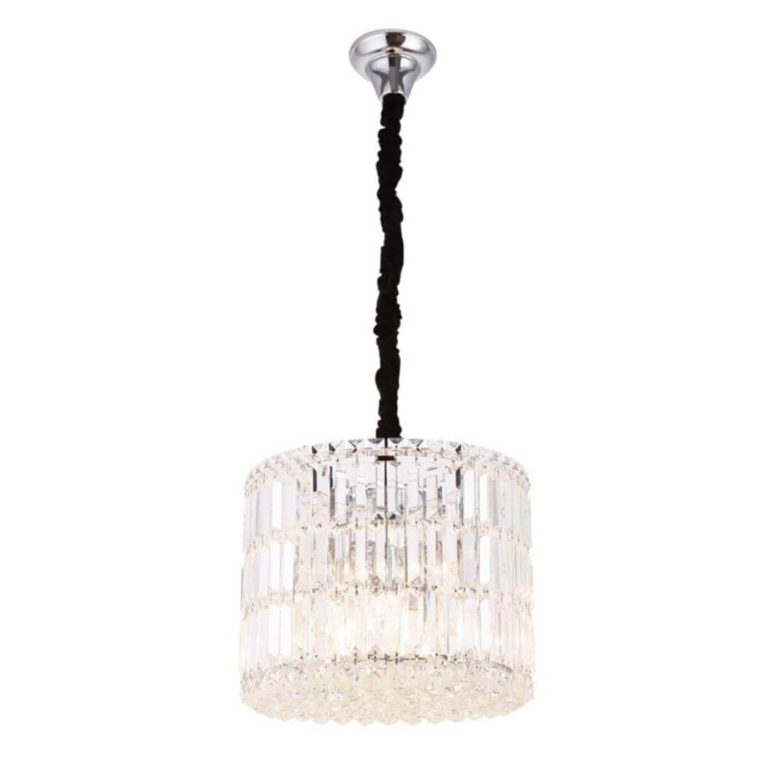 Lampa glamour Puccini S składa się z trzech podstawowych części: metalowej podsufitki, przewodu oplecionego tkaniną oraz szklanego klosza. Tym, co najbardziej rzuca się w oczy jest oczywiście niezwykle dekoracyjny abażur. Producent stworzył go z wielu szklanych elementów, które przepięknie odbijają światło – zarówno to sztuczne, jak i naturalne. Mieniące się kryształki dodają temu modelowi jeszcze większego blasku i wypełniają nim całe wnętrze. Dodatkowo ozdobą jest chromowane wykończenie stelaża, które także podkreśla świetlistość prezentowanej lampy wiszącej.