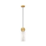 Jej biały marmurowy klosz w kształcie tuby harmonijnie łączy się ze złotym metalowym stelażem, tworząc niezwykle stylową kompozycję. To idealne oświetlenie do wnętrz nowoczesnych lub inspirowanych nowoczesną odsłoną stylu glamour. Elegancka lampa wisząca Saipina na złotym stelażu najlepiej prezentuje się w jasnych przestrzeniach, w których znajdą się również inne wysokiej jakości dodatki utrzymane w podobnej kolorystyce.