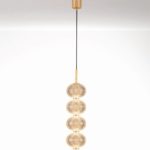 Wykonana z metalu i akrylu, elegancka lampa wisząca Tipuani A na złotym stelażu zachwyca transparentnym kloszem w formie pięciu kul ułożonych pionowo. Nietuzinkowy klosz subtelnie rozprasza światło, tworząc we wnętrzu przyjemną atmosferę. Złote wykończenie sprawia, że wisząca lampa Tipuani A pasuje zarówno do aranżacji nowoczesnych, jak i inspirowanych stylem glamour.