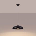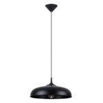 Elegancka lampa wisząca Vargas w czarnym kolorze wykonana została z metalu, dzięki czemu jest trwała i łatwa w pielęgnacji. Model wyposażony jest w klosz w kształcie misy o średnicy 38 cm, która równomiernie oświetla przestrzeń.