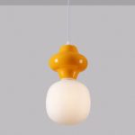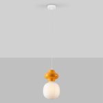Elegancka lampa wisząca Vilrosa A na białej podsufitce wyposażona jest w ceramiczny pomarańczowy element, który wnosi do wnętrza dobrą energię, przytulną atmosferę i doskonale pasuje do współczesnych aranżacji! Kontrastem jest wprowadzona biel, która nadaje oprawie lekkości.