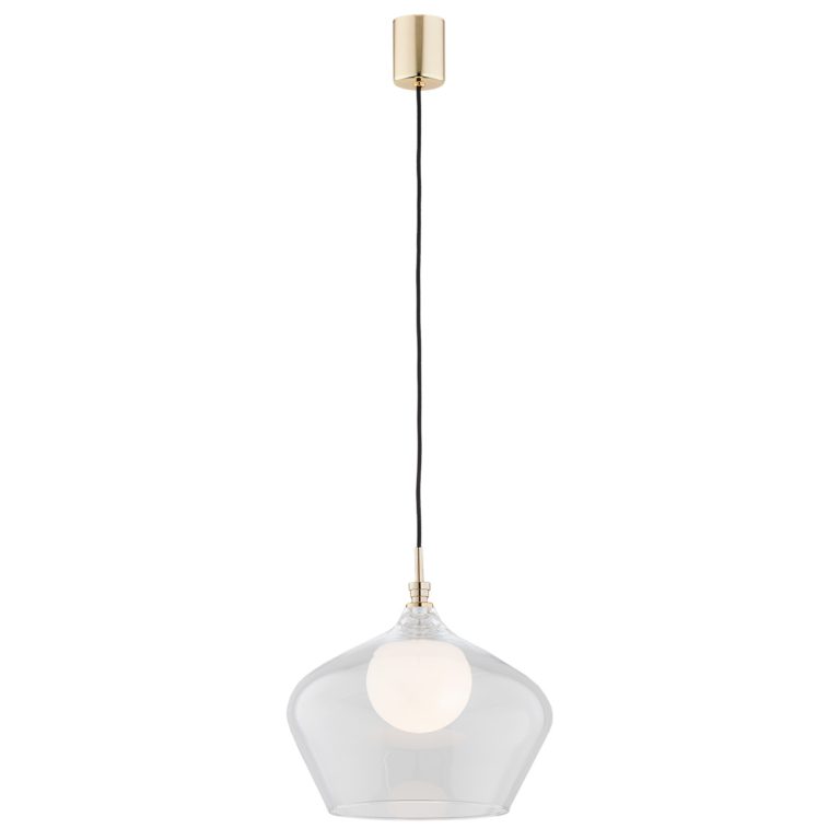 Na całą formę lampy wiszącej do kuchni i jadalni Irun składa się podsufitka, przewód oraz wyjątkowy podwójny klosz – zewnętrzny w kształcie kielicha oraz wewnętrzny w formie kuli. Oba wykonane są ze szkła, różnią się jednak kolorem: pierwszy jest transparentny, a drugi biały. Elegancka lampa wisząca z dużym kloszem Irun w nowoczesnym stylu dodaje wnętrzu lekkości, a dzięki uniwersalnym barwom pozwala na stworzenie wystroju o każdej kolorystyce.