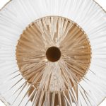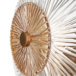 Poza kloszem, elegancki kinkiet ścienny Aster w złotym kolorze wyposażony jest w metalowy stelaż. Cały model ma średnicę 28 cm oraz głębokość 15,3 cm. Polecaną oprawę możesz wykorzystać na przykład w roli lampy do salonu, przedpokoju lub sypialni.