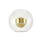 Na całą lampę Capri składa się aluminiowy złoty stelaż oraz kulisty klosz wykonany z transparentnego szkła, przez które całkowicie widoczna jest źródło światła. Elegancki kinkiet ścienny Capri wyposażony jest w zintgrowany LED, który emituje światło o wyjątkowo przyjemnej w odbiorze ciepłej temperaturze barwowej 3000 K i mocy strumienia świetlnego 1100 lm. Przezroczysty klosz o średnicy 30 cm bardzo dobrze rozprasza światło, dzięki czemu oferowana lampa LED nadaje się na przykład do czytania.
