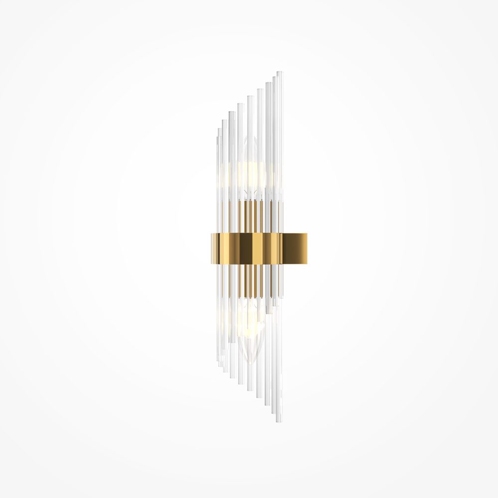 Elegancki kinkiet ścienny Frame w złotym kolorze wyposażona jest w designerski klosz wykonany z transparentnego szkła, które doskonale rozprasza światło. Model przystosowany jest do dwóch żarówek, dzięki czemu skutecznie doświetla przestrzeń. Kinkiety złoty Frame to także optymalne wymiary.