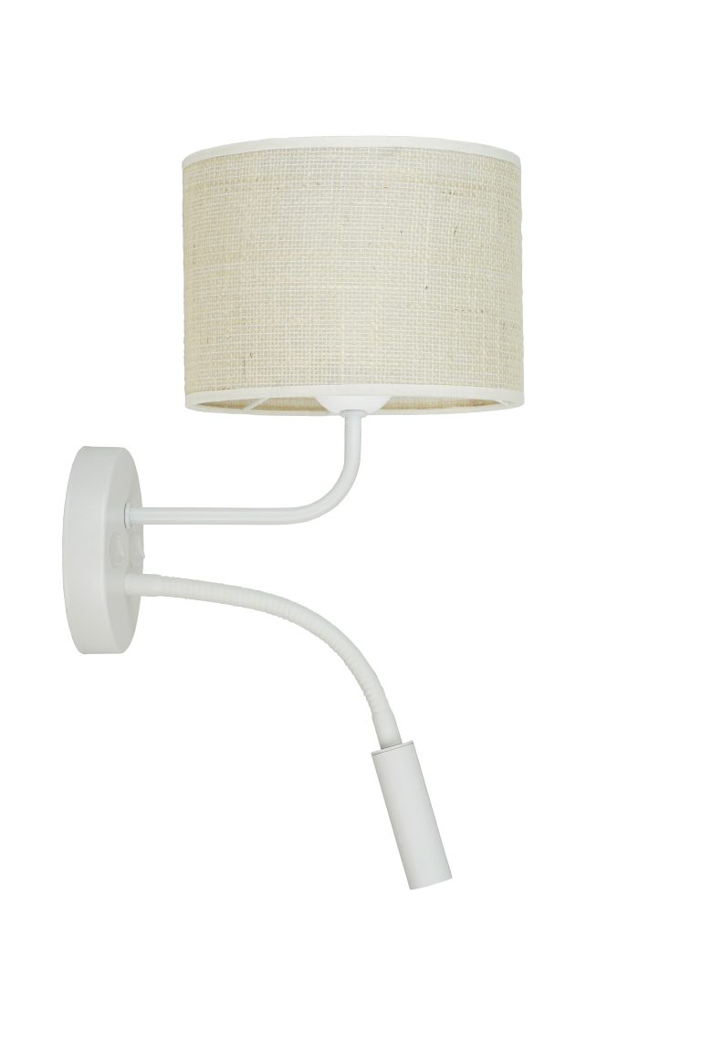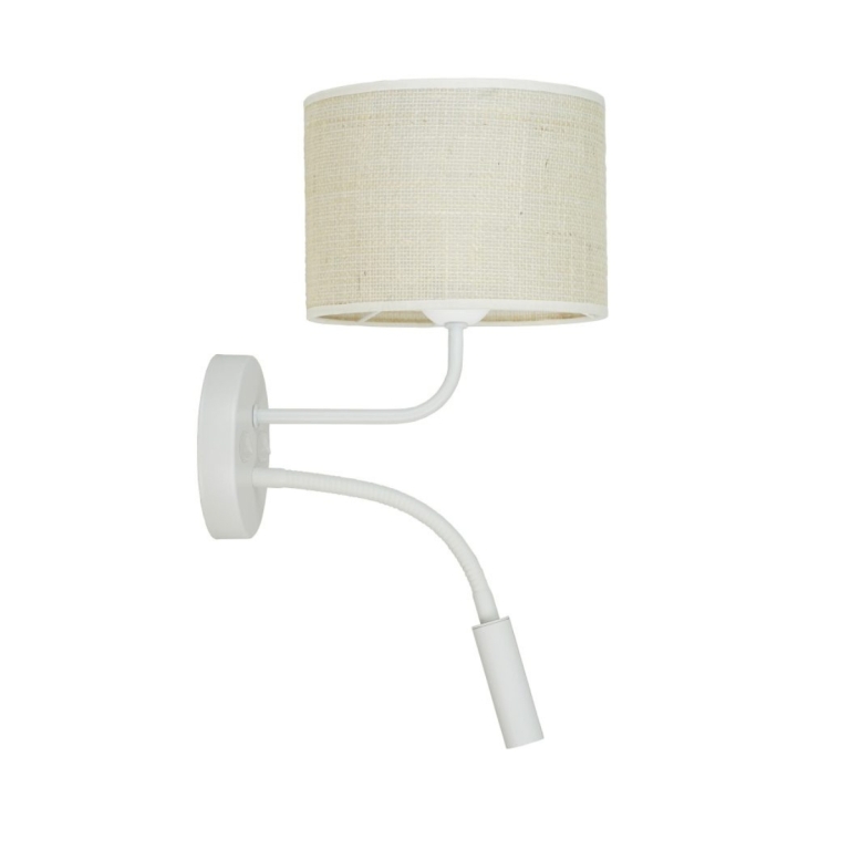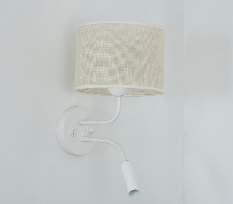 Zadbaj o swój komfort i stwórz stylowe wnętrze z kinkietem ściennym Hotelove! Lampa wyposażona została w jutowy abażur, który miękko rozprasza światło, dzięki czemu cała przestrzeń wypełnia się wyjątkowo przytulną atmosferą. Atutem modelu jest również dodatkowy punkt świetlny znajdujący się na ruchomym ramieniu.