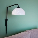 Idealny do sypialni, elegancki kinkiet ścienny Jazz ze szklanym kloszem to propozycja dla osób, które cenią sobie wysoką jakość, nowoczesny design i funkcjonalność! Jedną z głównych zalet modelu jest półokrągły klosz, który równomiernie rozprasza światło. Utrzymany w pięknym kolorze opalu, doskonale harmonizuje z czarnym stelażem.
