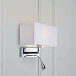 Kinkiet ścienny Savoy to eleganckie i funkcjonalne oświetlenie, które świetnie sprawdzi się przy łóżku lub fotelu, gdzie wykorzystać je możesz do czytania. Utrzymany w biało-chromowanej kolorystyce, urzeka elegancją i doskonale komponuje się zarówno w nowoczesnymi, jak i bardziej klasycznymi aranżacjami. Dodatkowo posiada dwa punkty świetlne i przewód o długości aż 200 cm.