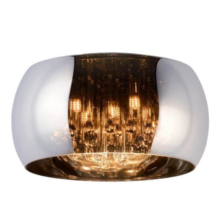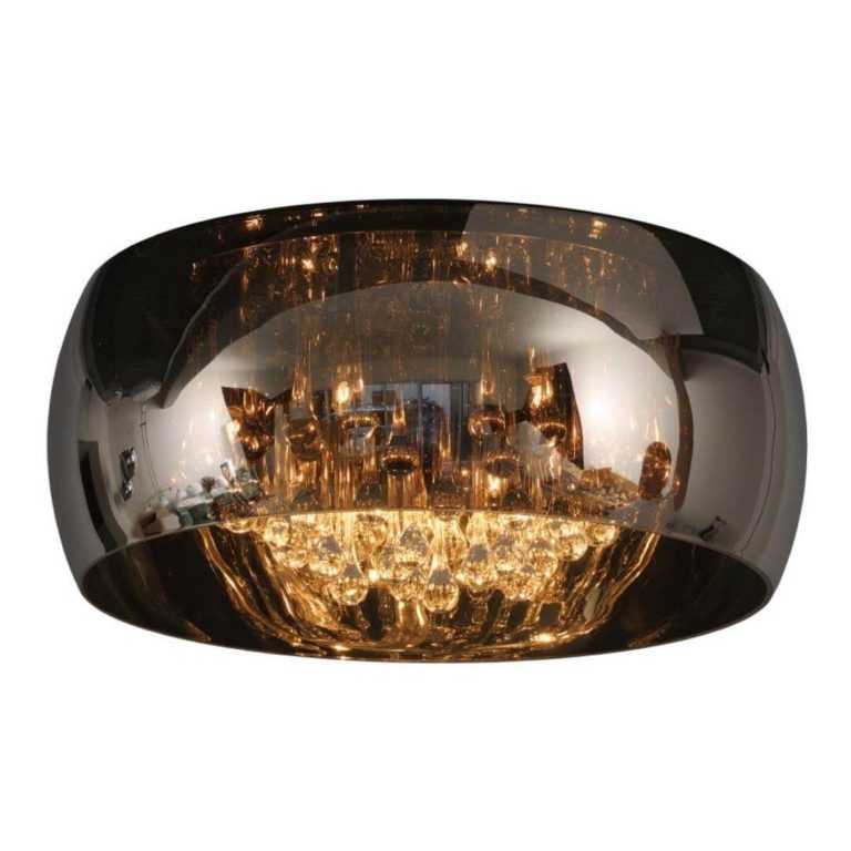 Oferowany przez nas plafon w stylu glamour zaprojektowany został na bazie koła. Model ten składa się z dwóch głównych części, tworzących razem wyjątkowo efektowną całość. Pierwszą z nich jest zewnętrzna oprawa w postaci zaokrąglonego rantu, który wykonany został z przepięknego i bardzo modnego obecnie, dymionego szkła. Wewnętrzna część składa się z transparentnych kryształków, które dodają całości jeszcze większej dekoracyjności, elegancji i świetlistości.