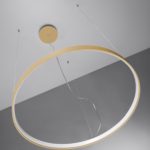 Elegancki żyrandol LED Rio do salonu w całości utrzymany jest w złotej kolorystyce o matowym wykończeniu. Model emituje przyjemne dla oka światło w dwóch wariantach: 3000 i 4000 K. Lampa wisząca złota LED Rio najlepiej prezentuje się w nowoczesnych aranżacjach, w których pojawią się również inne elementy wyposażenia w tej samej kolorystyce. Klasyczny złoty kolor zestawić możesz także z praktycznie każdą inną barwą. Złoty żyrandol pięknie współgra, chociażby z bielą, czernią, granatem i turkusem.