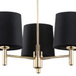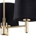 Złota żyrandol w stylu glamour Ponte Plus 3 wyposażony jest w trzy welurowe klosze w kolorze czarnym. Każdy abażur ma identyczny rozszerzający się ku dołowi kształt, które doskonale rozprowadza światło. Elegancki żyrandol Ponte Plus 3 na złotym stelażu wyjątkowo dobrze sprawdza się w roli oświetlenia do salonu i sypialni, ale też w wielu innych pomieszczeniach – również w stylowym gabinecie, czy hotelu. Oprawę możesz zamontować zarówno nad środkową częścią wnętrza, jak i w jednej z wybranych stref.