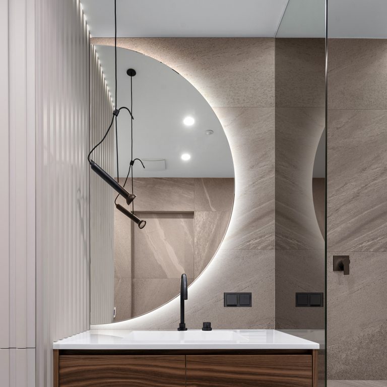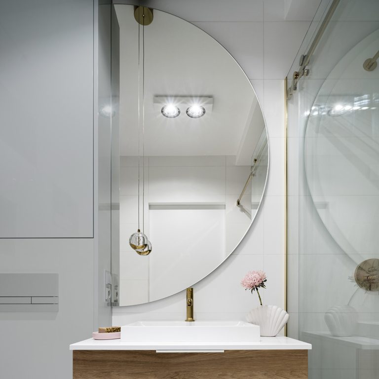 Oferowane w naszym sklepie internetowym nowoczesne lustro Dimidium przeznaczone jest do zamontowania na ścianie. Model wykonany został z wodoszczelnych materiałów i to właśnie dlatego idealnie sprawdza się w roli zwierciadła łazienkowego, które możesz zawiesić, chociażby nad umywalką. Eleganckie lustro Dimidium w nowoczesnym stylu ma dekoracyjny półokrągły kształt i nadaje się do zamontowania zarówno w poziomie, jak i w pionie.