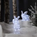 Figurka zajączka trzymającego jedną łapę na przywitanie Crystalo