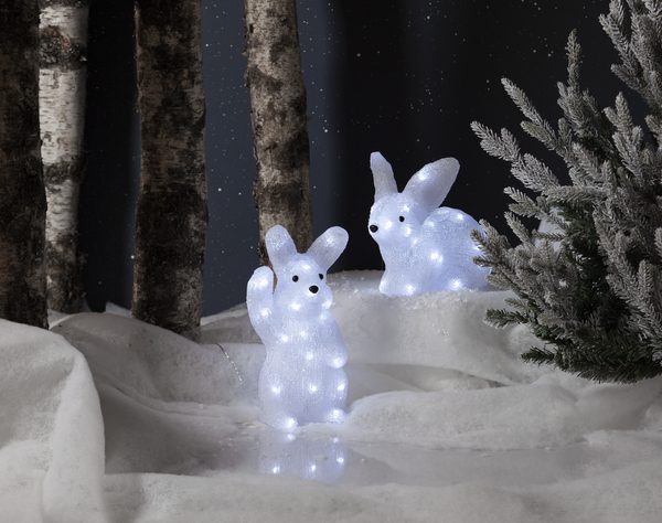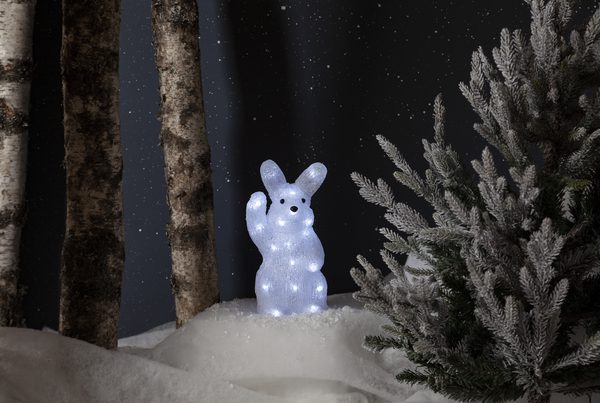 Figurka zajączka trzymającego jedną łapę na przywitanie Crystalo