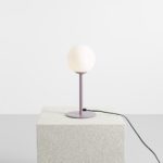 Niewielka, ale niezwykle urocza lampka nocna w nowoczesnym stylu Dot wyposażona jest w mlecznobiały klosz w kształcie kuli. Ta idealna forma prezentuje się niezwykle elegancko i bardzo dobrze komponuje się z prostą podstawą, wykonaną z wysokiej jakości metalu w kolorze fioletowym. Kulisty klosz jest szklany, dzięki czemu fantastycznie rozprasza światło. Fioletowa lampka nocna Dot z białą kulą świetnie będzie pasować do pastelowych i jasnych wnętrz, dodając im przytulności. Jeśli chcesz podkreślić charakter tej lampki-kuli, wnieś do wnętrza również kilka innych dodatków w fioletowym kolorze – na przykład w postaci poduszek, zasłon lub dywanu.