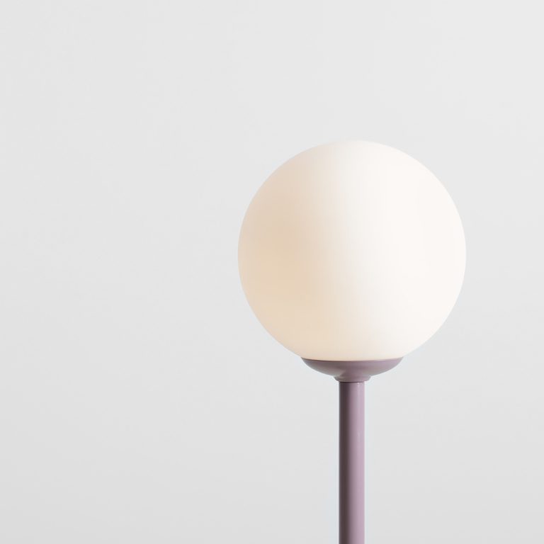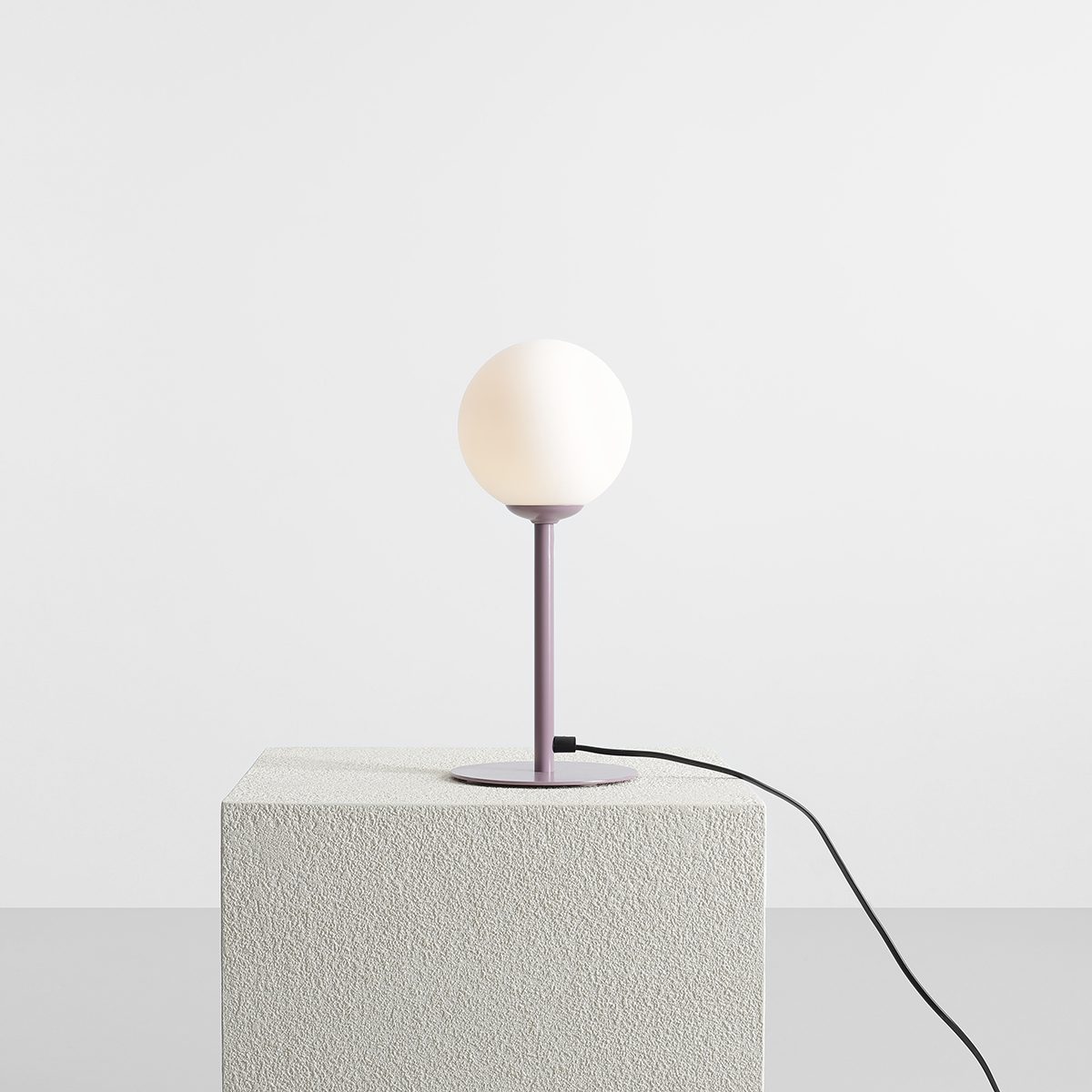 Niewielka, ale niezwykle urocza lampka nocna w nowoczesnym stylu Dot wyposażona jest w mlecznobiały klosz w kształcie kuli. Ta idealna forma prezentuje się niezwykle elegancko i bardzo dobrze komponuje się z prostą podstawą, wykonaną z wysokiej jakości metalu w kolorze fioletowym. Kulisty klosz jest szklany, dzięki czemu fantastycznie rozprasza światło. Fioletowa lampka nocna Dot z białą kulą świetnie będzie pasować do pastelowych i jasnych wnętrz, dodając im przytulności. Jeśli chcesz podkreślić charakter tej lampki-kuli, wnieś do wnętrza również kilka innych dodatków w fioletowym kolorze – na przykład w postaci poduszek, zasłon lub dywanu.