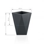 Nowoczesna donica Vaso idealnie wpasuje się we współczesne trendy mieszkaniowe. Proste, a jednocześnie ostre, geometryczne kształty donicy sprawiają, że staje się oryginalnym dodatkiem wnętrz, balkonów, tarasów, czy nawet ogrodów. Dodatkowym atutem jest głębokie dno donicy, dzięki czemu można nasadzić w niej większe rośliny. Możliwość łączenia większej ilości donic,dostawiając je jedna do drugiej. Jest to możliwe dzięki prostym ściankom bocznym.