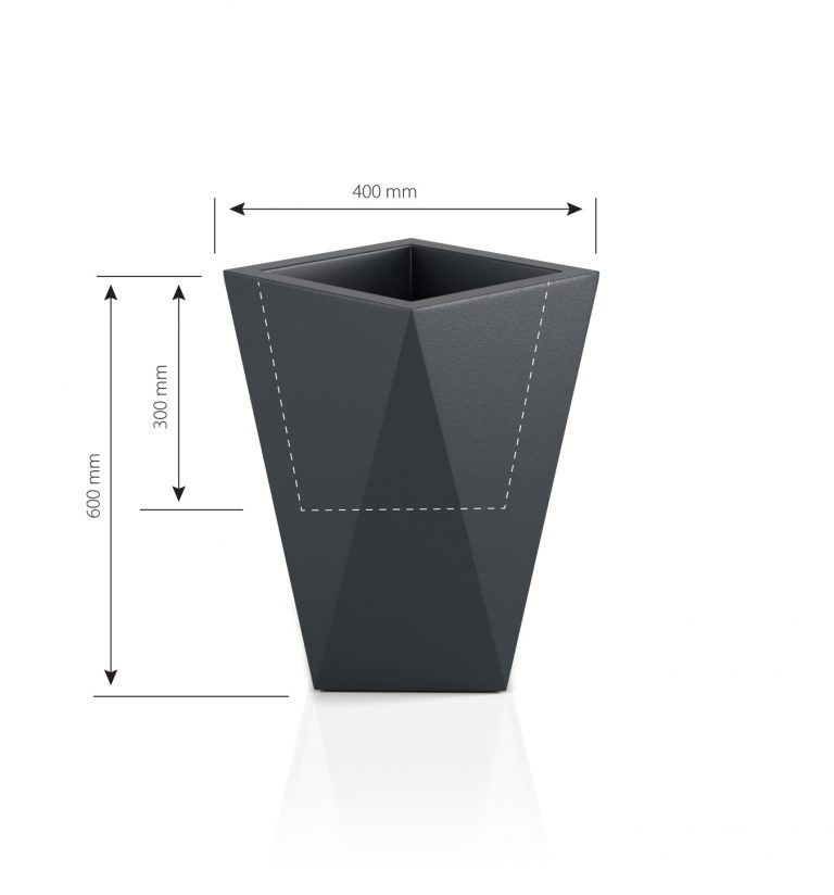 Nowoczesna donica Vaso idealnie wpasuje się we współczesne trendy mieszkaniowe. Proste, a jednocześnie ostre, geometryczne kształty donicy sprawiają, że staje się oryginalnym dodatkiem wnętrz, balkonów, tarasów, czy nawet ogrodów. Dodatkowym atutem jest głębokie dno donicy, dzięki czemu można nasadzić w niej większe rośliny. Możliwość łączenia większej ilości donic,dostawiając je jedna do drugiej. Jest to możliwe dzięki prostym ściankom bocznym.