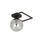 Geometryczna lampa sufitowa do przedpokoju Sole Oblong S składa się z prostokątnego stelaża, wykonanego ze stali lakierowanej na czarno oraz z kulistego klosza. Do jego stworzenia wykorzystano szkło o niestandardowej, popielatej barwie. Oba elementy tworzą wyjątkowo zgraną całość, która prezentuje się oryginalnie, ale też bardzo gustownie. Dodatkowo popielate szkło sprawia, że światło staje się nieco bardziej nastrojowe.