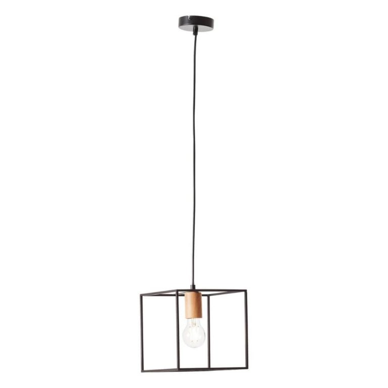 Co najbardziej wyróżnia ta oferowana przez nas wisząca lampa? Przede wszystkim, od razu rzuca się w oczy jej wyjątkowo surowy design, który nadaje jej specyficznego charakteru. Całe oświetlenie do wnętrz Arica składa się właściwie tylko z czterech części: okrągłej maskownicy, przewodu (będącego jednocześnie zawieszeniem), drewnianej oprawki na jedno źródło światła oraz metalowego klosza w formie sześciennej ramy (o bokach równych 20 cm).