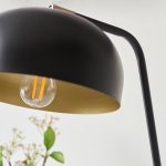 W całości wykonana z metalu, industrialna lampa stołowa Brair New do biura wyposażona jest w kopułowy klosz, prosty stelaż oraz unikatową podstawę w kształcie pierścienia, którego lekkość równoważy masywność klosza. Oferowana lampa industrialna utrzymana jest w czarnym kolorze, wnętrze klosza ma jednak odcień mosiądzu, który podkreśla elegancję całości oraz ociepla surowość formy.