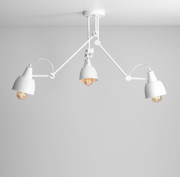 Wyróżnikiem industrialnej lampy Boe są trzy, niezależnie rozchodzące się od siebie ramiona, które można regulować kierując snop światła, dokładnie tam, gdzie potrzebujesz. To także piękna matowa biel, ozdobne zawiasy, wyrazista podsufitka oraz charakterystyczne, kielichowe klosze. Salonowa lampa Boe budzi uwagę i przykuwa wzrok – stanowić będzie ważny dodatek do Twojej industrialnej aranżacji, może nawet uczynisz z niej centralny element wystroju?