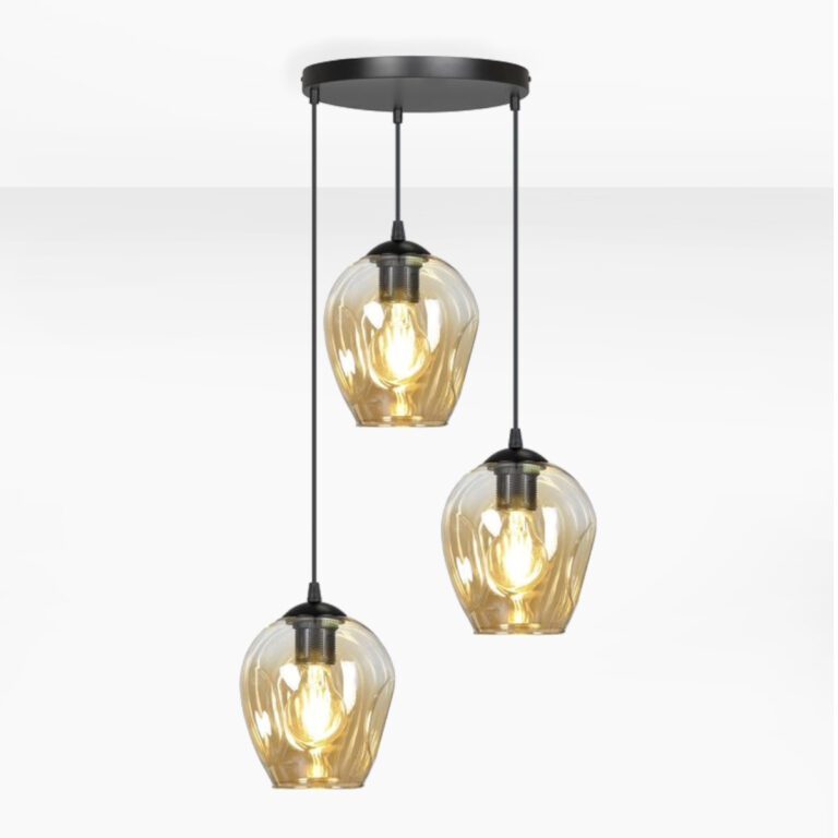 Ta prosta konstrukcja urozmaicona została przez oryginalne wykończenie, a jego głównym elementem są oczywiście miodowe klosze. Każdy z nich ma ten sam kształt, przypominający nieco odwrócony kielich oraz wysokość 17 cm. Industrialna lampa wisząca z miodowymi kloszami sprawia, że płynące z niej światło wyraźnie się ociepla, dzięki czemu całe pomieszczenie zyskuje na przyjemnej atmosferze. Jeśli zależy Ci na efekcie przytulności, a dodatkowo cenisz sobie surowość stylu industrialnego – Ava 3 Ring to Twój totalny must have!