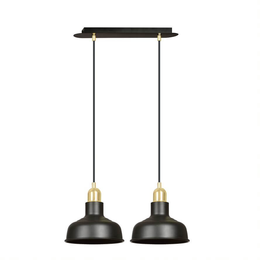 Model Grace 2 bardzo dobrze łączy się również ze stylem nowoczesnym, minimalistycznym, a nawet skandynawskim. Nietypowy charakter tej industrialnej lampy łączy w sobie elementy retro z nowoczesnymi, dlatego tak dobrze zestawia się ona z bardzo zróżnicowaną stylistyką. To propozycja, która wykonana została z metalu malowanego proszkowo na czarno oraz wyposażona jest w detale w złotym kolorze. Składa się na nią stelaż, zawieszenie oraz dwa klosze.