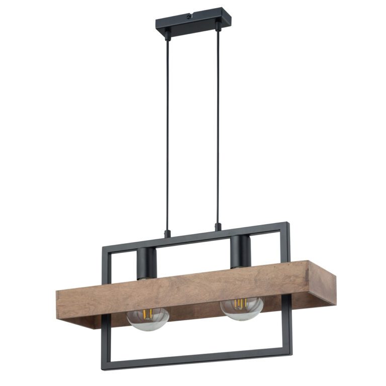 Industrialna lampa wisząca Noemi 2 to przede wszystkim prostota i świetny design. Polski producent postarał się o solidne wykonanie i użycie najlepszych materiałów. Lampa Noemi 2 składa się z metalowego stelażu z dwoma źródłami światła. Całość przyozdobiono opaską ze sklejki w pięknym brązowym kolorze. Lampa sufitowa doskonale sprawdzi się jako oświetlenie pokoju dziennego lub sypialni.