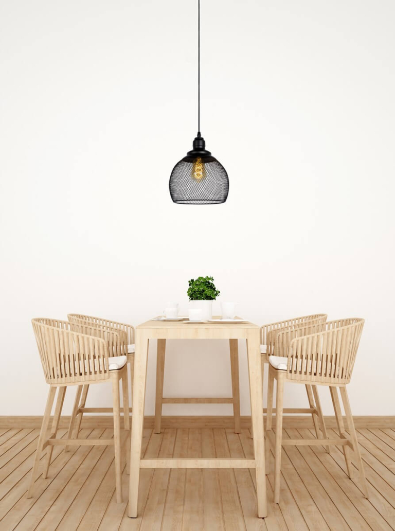 Wysokie loftowe wnętrze czy klasyczny apartament? W obu tych przestrzeniach doskonale sprawdza się industrialny zwis Mesh Shapely. To model uniwersalnego oświetlenia w klasycznym czarnym kolorze, któremu jednak nie brakuje również oryginalności. Jest to propozycja, jaką możesz wykorzystać w niemal wszystkich wnętrzach swojego domu – w tym w stylowej kuchni, jadalni oraz salonie.
