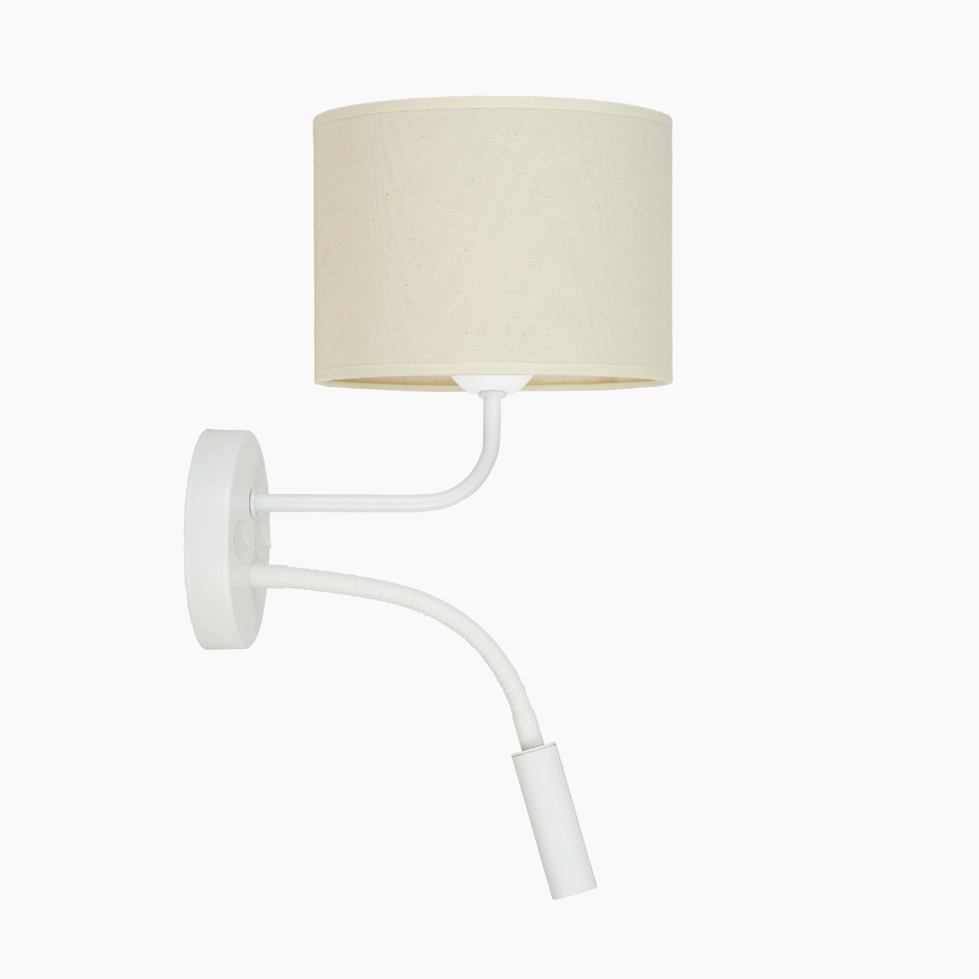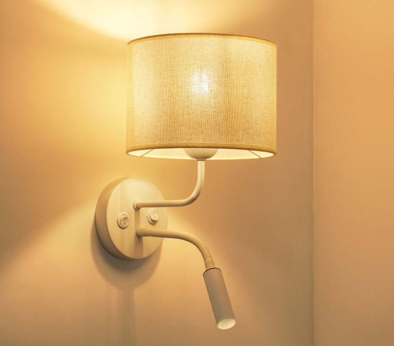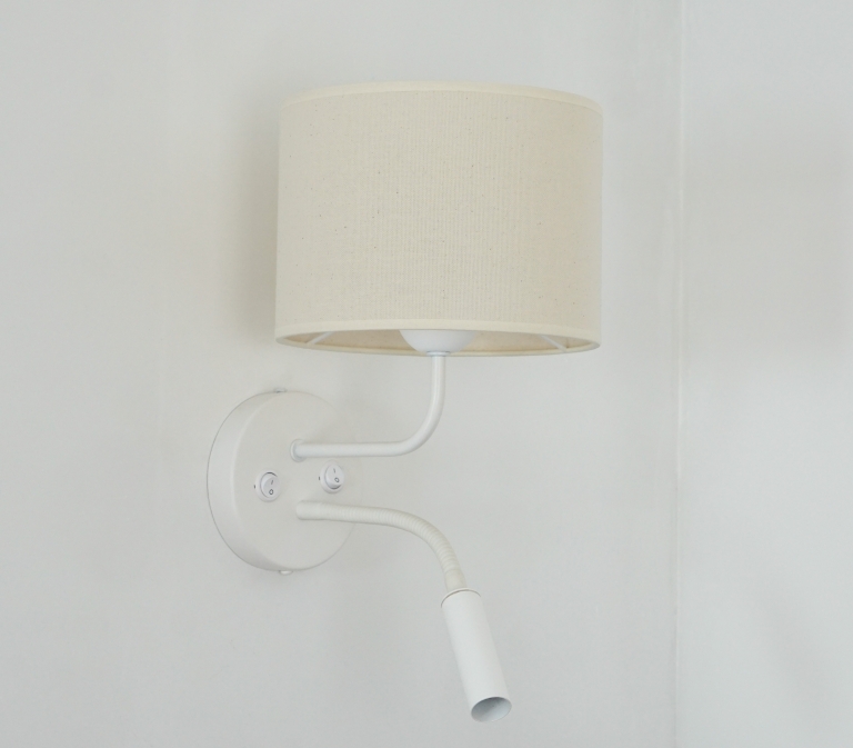 Jasny kinkiet ścienny Hotelove z dwoma włącznikami to propozycja, która wyróżnia się przede wszystkim wyjątkową funkcjonalnością. Model wyposażony jest w dwa punkty świetlne: jeden znajduje się w jutowym abażurze, drugi ma postać regulowanego wysięgnika. To oprawa, która pozwoli Ci zarówno stworzyć przytulną atmosferę, jak i sprawdzi się na przykład podczas czytania. To wprost idealny kinkiet do sypialni lub salonu!