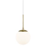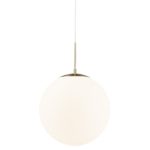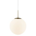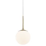 Pojedyncza lampa wisząca Grant wyposażona jest w klosz w kształcie idealnej kuli, który wykonany został z mlecznobiałego szkła. Zarówno forma, jak i zastosowana kolorystyka umożliwiają równomierne i łagodnie rozproszone światło, które sprzyja budowaniu przyjaznej atmosfery. Biały klosz idealnie komponuje się ze złotymi elementami, nadając oprawie wyrafinowanego charakteru. Jednopunktowa lampa wisząca na złotym stelażu Grant to propozycja, która doskonale prezentuje się w aranżacjach nowoczesnych, także inspirowanym stylem klasycznym i glamour.