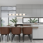 Biała lampa wisząca na listwie Enkel 3 L nad wyspę kuchenną