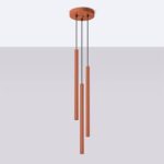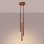 Model wyposażony został w trzy wąskie, kaskadowo ułożone klosze oraz w okrągłą podsufitkę, która dopełnia całość. Lampa wykonana została z metalu, gwarantując trwałość na długi czas. Dodatkowo, przystosowana została do energooszczędnych żarówek LED.