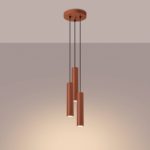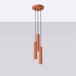 Lampa wisząca Achilles 3 w czerwonym kolorze to zarówno wyjątkowa, wyrazista kolorystyka, jak i stylowa forma oparta na kaskadowym ułożeniu trzech kloszy. Każdy z nich wyróżnia się minimalistycznym, podłużnym kształtem, który idealnie komponuje się z okrągłą podsufitką. Całość przyciąga uwagę, ale nie dominuje wnętrza.