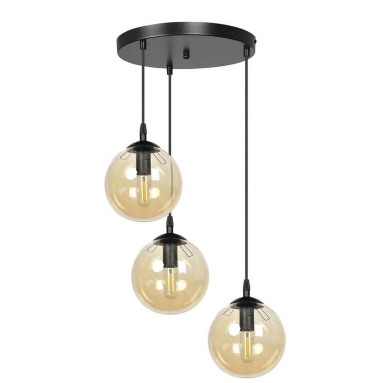 Na niezwykły wygląd wiszącej lampy nad stół Blair 3 Ring składają się w dużej mierze trzy kuliste klosze o nietypowym, miodowym odcieniu szkła. Każdy z nich ociepla delikatnie światło oraz pięknie połyskuje. Podsufitka oraz przewody zasilające utrzymane są w czarnym kolorze, który doskonale podkreśla barwę szkła. Oferowany model bardzo dobrze pasuje do wnętrz industrialnych oraz nowoczesnych.