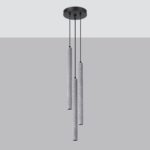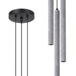 Najbardziej przyciągającymi uwagę elementami wiszącej lampy Callum 3 są betonowe klosze o podłużnym kształcie tuby. Kaskadowa lampa wisząca Callum 3 na okrągłej podsufitce umożliwia zawieszenie poszczególnych punktów świetlnych na różnych wysokościach, co nie tylko pozwala lepiej rozjaśnić wnętrze, ale również wizualnie je urozmaica.