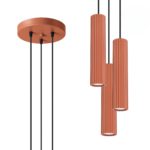 Kaskadowa lampa wisząca Dolkar 3 w koralowym kolorze posiada trzy podłużne dekorowane klosze wykonane z metalu, co zapewnia jej trwałość i nadaje stylowego wygląd. Lampa koralowa Dolkar 3 pozwala samodzielnie dopasować wysokość, na jakiej ma być zawieszony każdy z kloszy – stąd możliwość stworzenia kaskadowej konstrukcji. Okrągła podsufitka dodaje całości harmonii i ułatwia montaż.